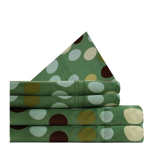Give your room a contemporary look with this polka dot printed sheet set in a palette of elegant hues on a green background Woven of buttery soft and smooth 350 Thread Count Egyptian Cotton Sateen these 23-inch deep pocket sheets will complement any bedroom decor 100-percent egyptian cotton satee